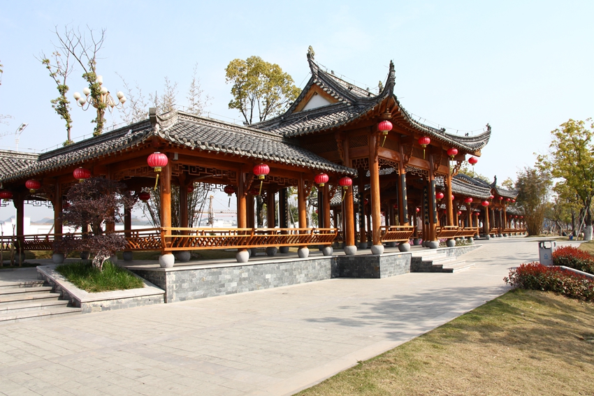 它是按照徽州水口園林意象建設(shè),供市民和游人休憩、觀景的場所。亭廊由三廊四亭組成,為徽派建筑風(fēng)格,樟木制成,總長108米,暗合黃山市目前三區(qū)四縣的規(guī)劃和101個(gè)鄉(xiāng)鎮(zhèn)與7個(gè)街道。中國最長的長廊是頤和園的長廊,全長1728米,長廊的裝飾主要為蘇式彩畫為主(共14000余幅),而我們這個(gè)長廊主要是以徽州楹聯(lián)為主(共20余幅)。廊上布置楹聯(lián),基本采用原徽州各縣薈萃的老對聯(lián),經(jīng)歷了數(shù)百年風(fēng)雨的洗禮。所有亭廊進(jìn)出口的外聯(lián)以寫山水風(fēng)光為主,內(nèi)聯(lián)則每個(gè)亭廊都相應(yīng)集中一個(gè)主題,按讀書、做人、經(jīng)商、做官等各行業(yè)分配。